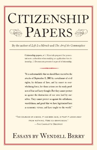 .There are those in America today who seem to feel we must audition for our citizenship, with "Patriot" offered as the badge for those found narrowly worthy. Let this book stand as Wendell Berry’s application, for he is one of those faithful, devoted critics envisioned by the Founding Fathers to be the life’s blood and very future of the nation they imagined. Adams, Jefferson and Madison would have found great clarity in his prose and great hope in his vision. And today’s readers will be moved and encouraged by his anger and his refusal to surrender in the face of desperate odds. Books get written for all sorts of reasons, and this book was written out of necessity.